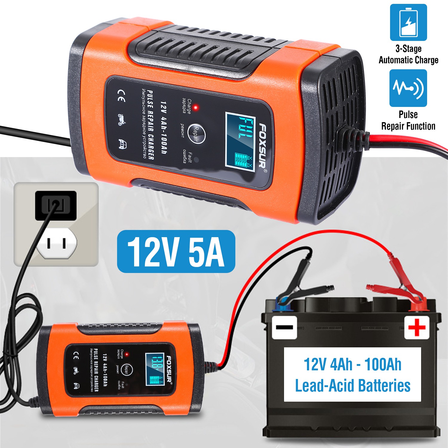 Home > Car Battery Charger 12V 5A LCD Intelligent Auto Motorcycle Boat ATV Recover Pulse Repair