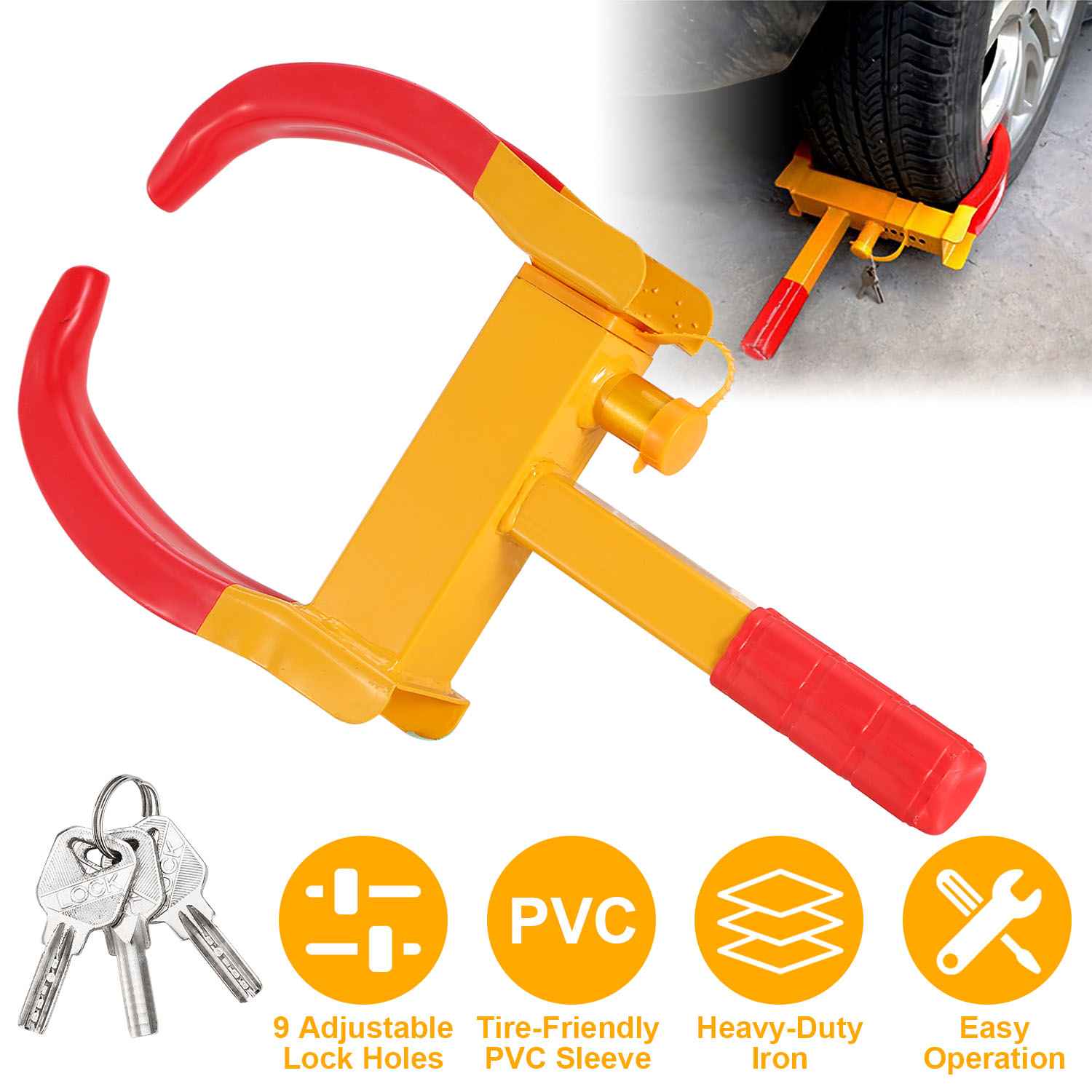Home > Heavy Duty Wheel Clamp Anti-Theft Adjustable Tire Lock w/3 Keys for Cars Trailer Truck Motorcycles ATV RV Golf Carts