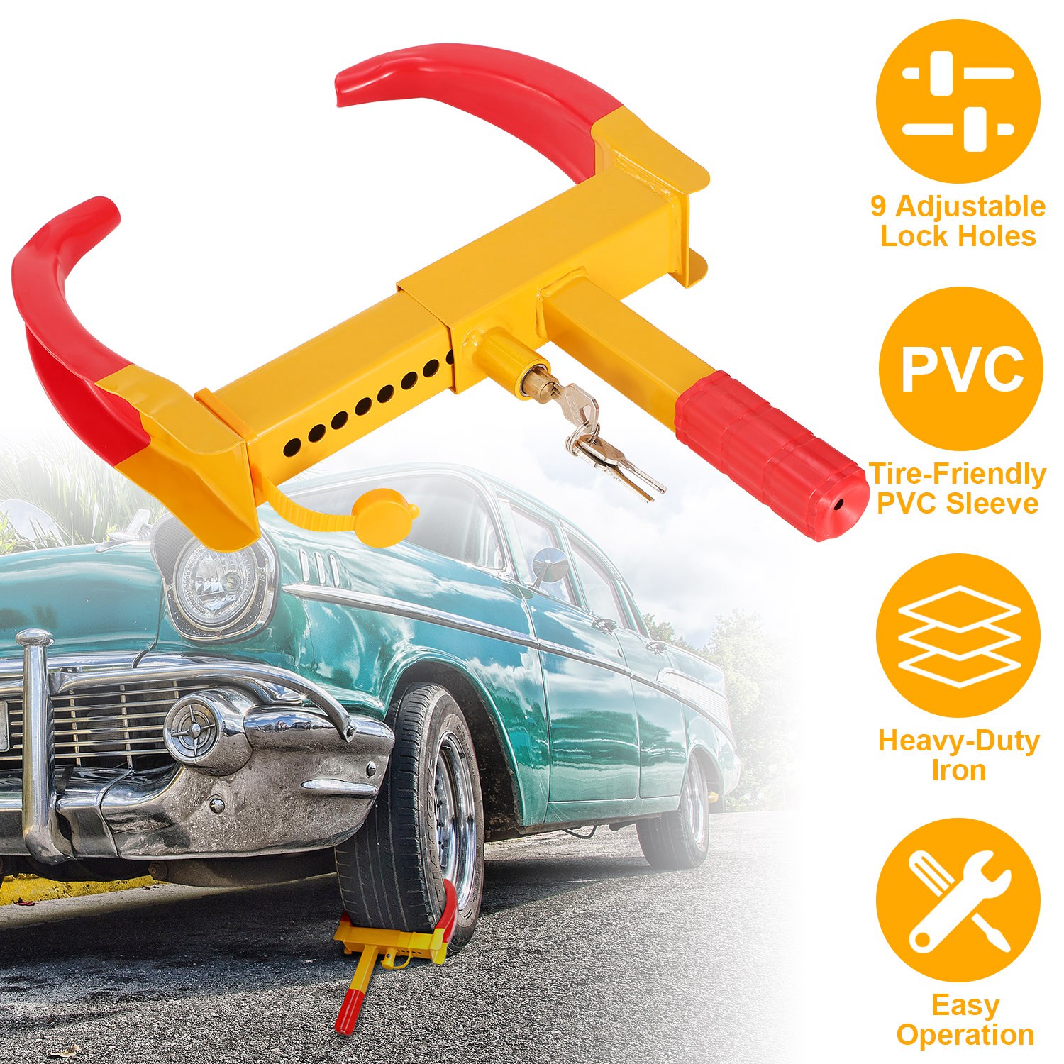 Heavy Duty Wheel Clamp Anti-Theft Adjustable Tire Lock w/3 Keys for Cars Trailer Truck Motorcycles ATV RV Golf Carts